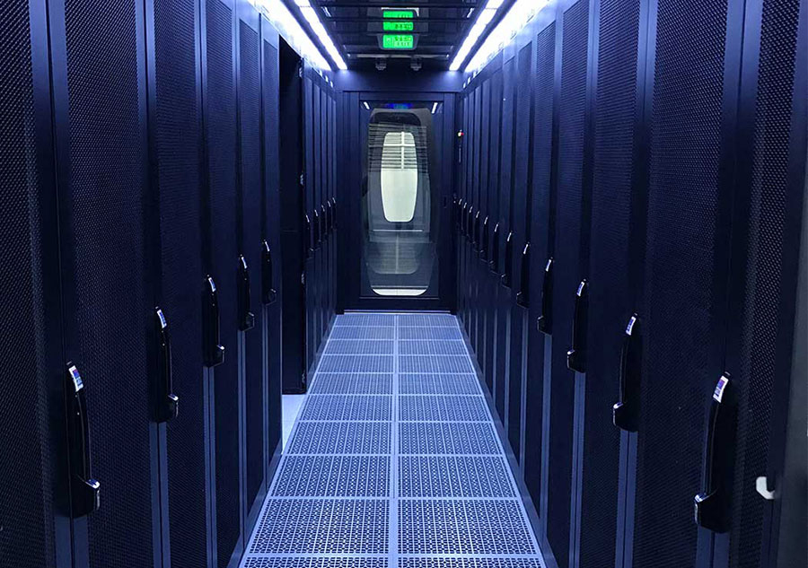 数据中心全部采用绿色环保的冷通道封闭技术可实现冷热通道分离,大幅度提高了制冷效率。采用N+1约克离心式冷水机组,12度的中温水系统有效降低能耗,精密空调采用 N+2 设计并使用UPS供电,独有双环管路设计保证在线维护要求,更配置有6,000立方米蓄冷水池,专门为T4级别数据中心不间断制冷要求而设计,是华南地区最大的应急蓄冷系统,满载应急蓄冷时间可达3小时,每年利用电价消峰填谷节省电费超过300万元人民币。